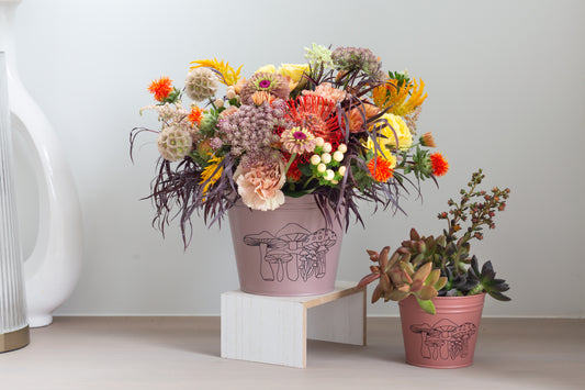 Tin Pail w/ hard liner - Fall-Inspired Mushroom Design