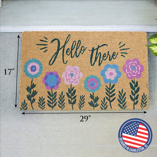 'Welcome' Green Leaves Doormat, Natural Coir Mat