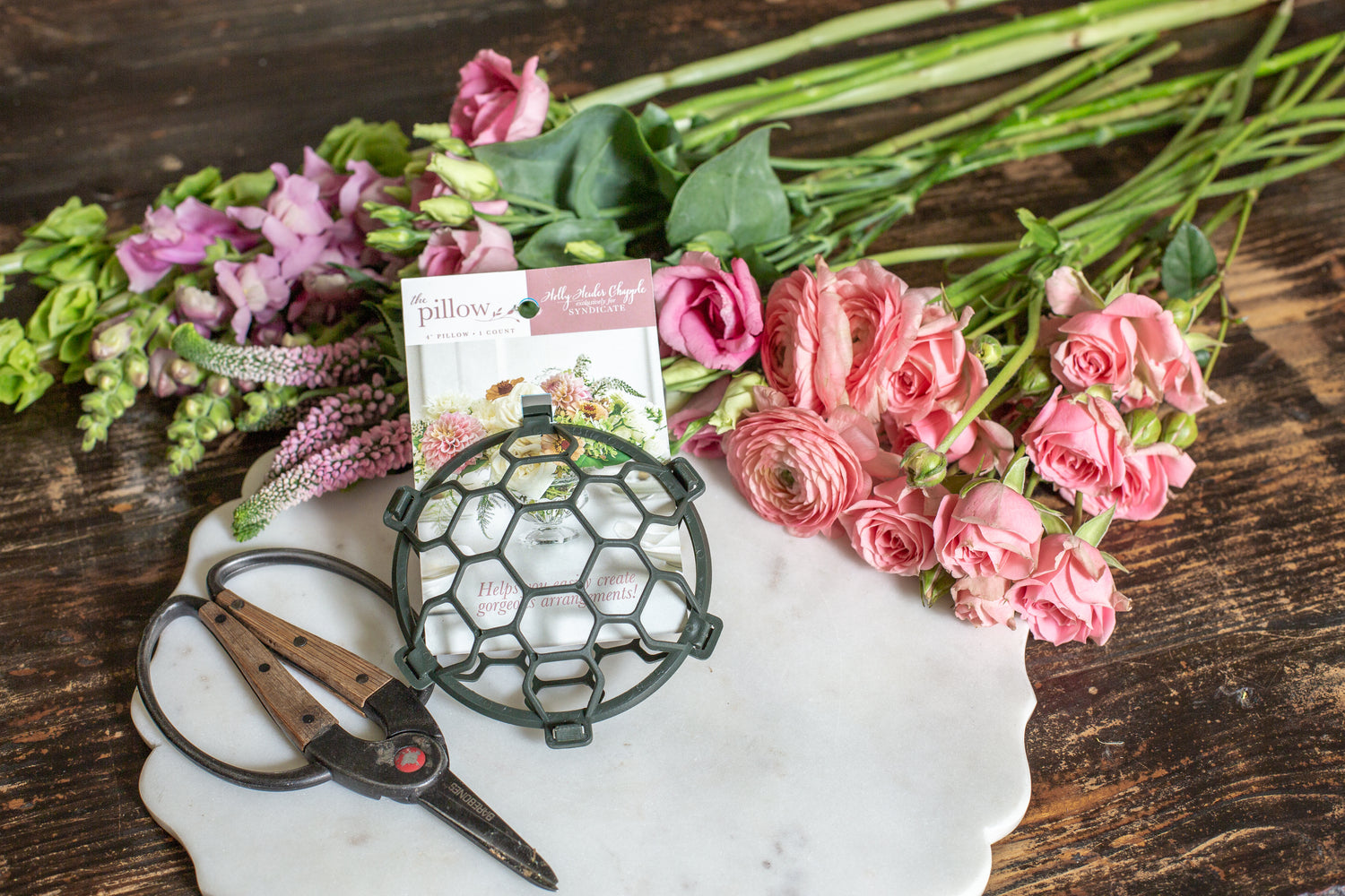 Create stunning floral arrangements for Valentines Day using the Pillow mechanic from Holly Chapple. The Pillow locks flowers in place, stem by stem, while you create gorgeous, airy arrangements.