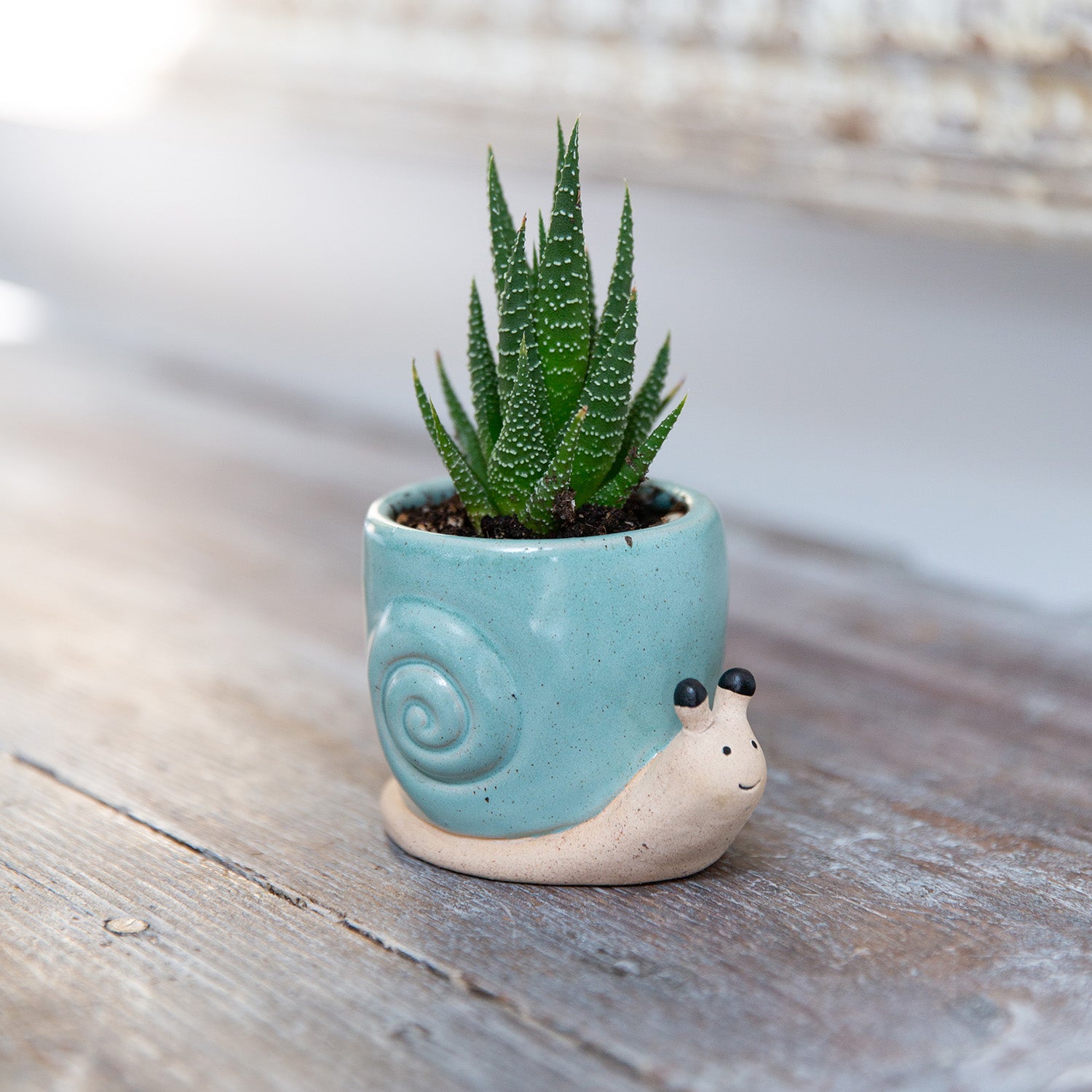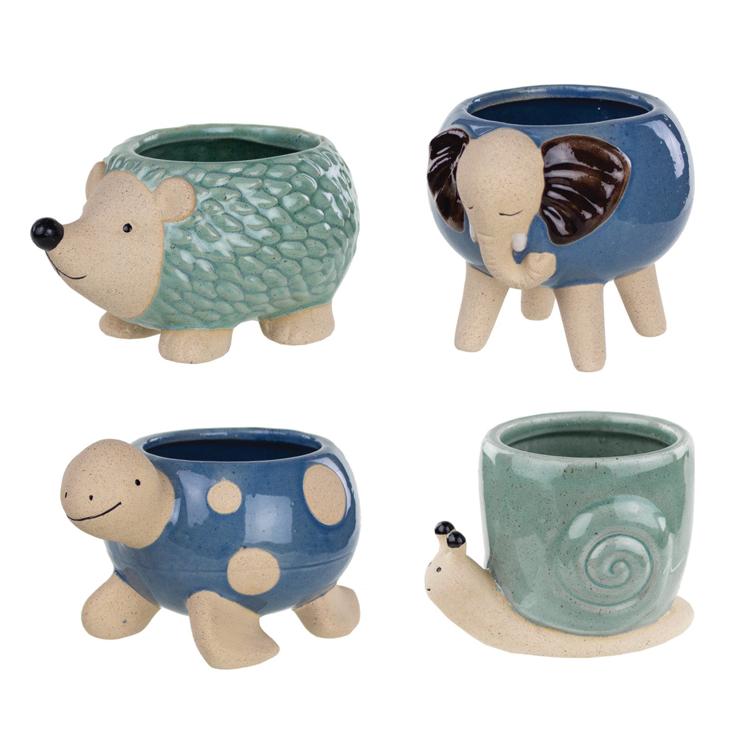 Add some whimsy and charm to any indoor garden with the Ceramic Mini Animal Planter assortment. These popular animal shapes (elephant, porcupine, turtle, and snail) are perfect for mini succulents, tropicals and small herbs. With a colorful, glazed finish, these planters are hard to resist. Great for 2” and 2.5” drop in plants. Available in an assorted PDQ for easy merchandising.