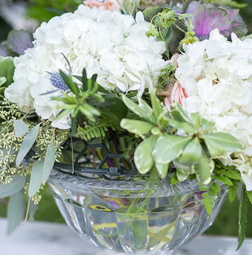 Show off your stunning floral arrangements in a versatile and stylish Abby Compote from the Holly Heider Chapple exclusively for Syndicate collection. The Abby Compote is lightweight, stackable and perfect for easy transport to and from your event. It is manufactured with the highest grade plastic resin, has double reinforced walls and a solid, one-piece construction. All Abby Compotes pair perfectly with the Pillow mechanics for a seamless, time-saving design system for your floral centerpieces.
